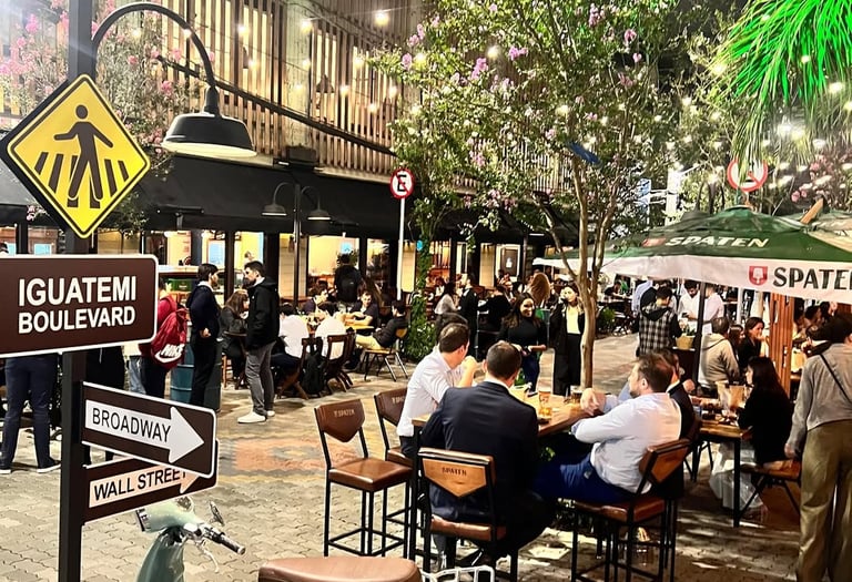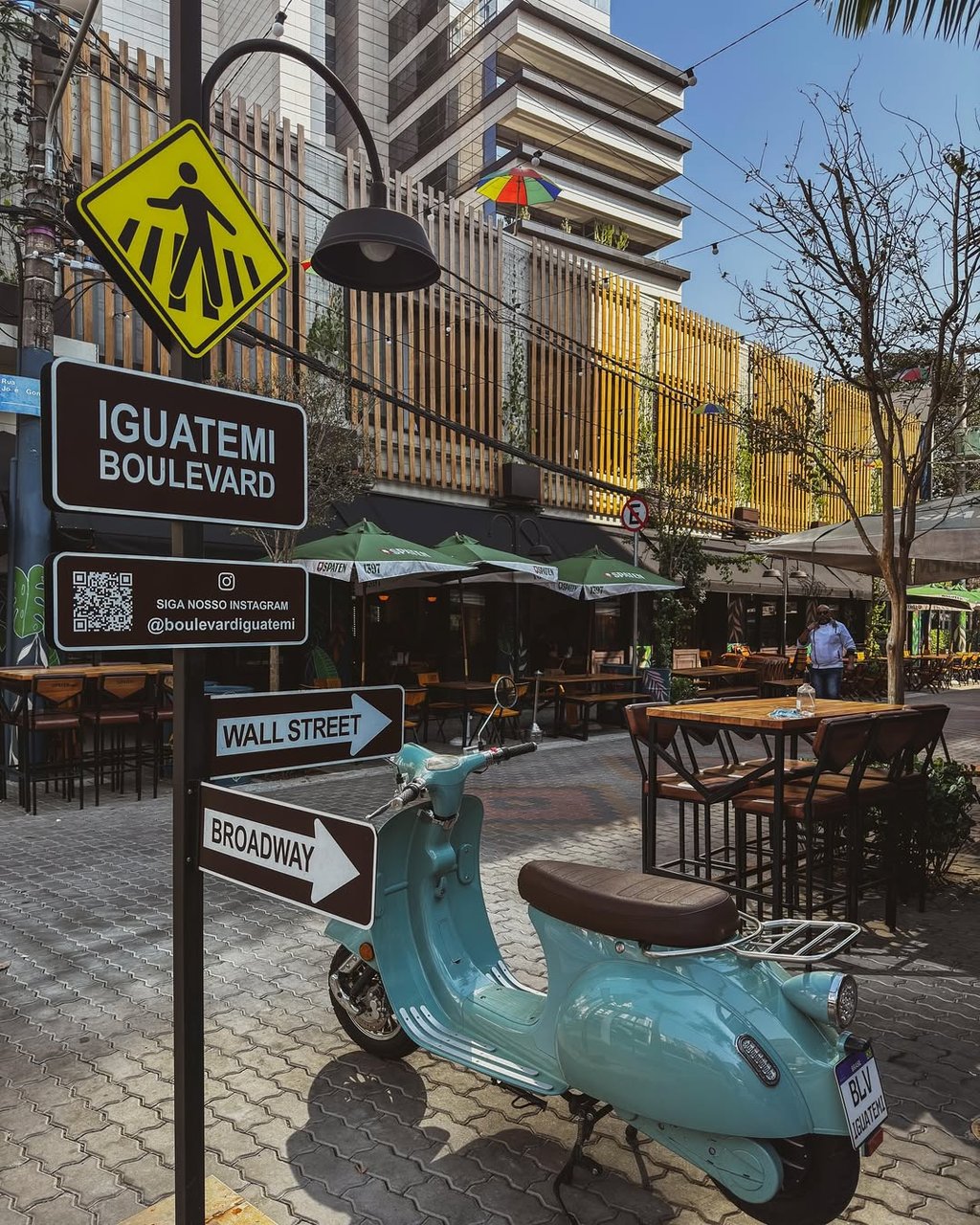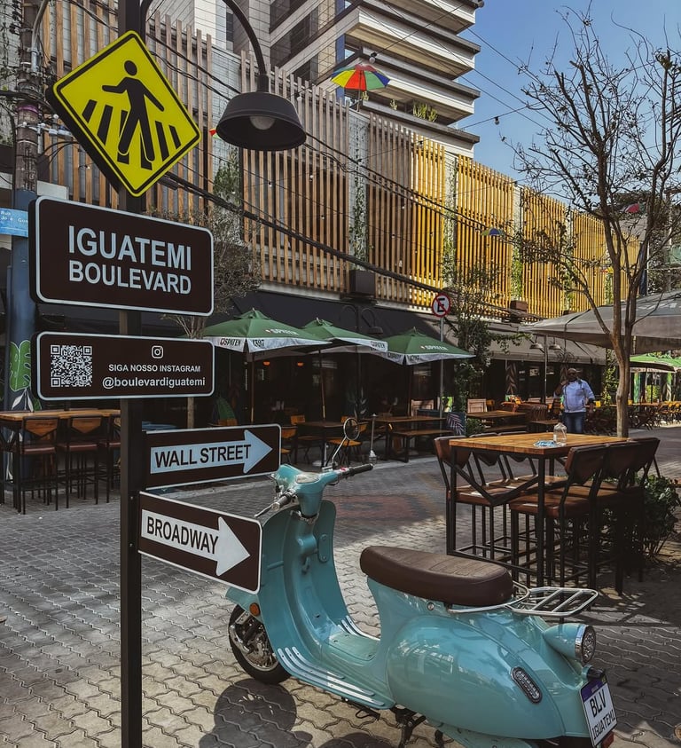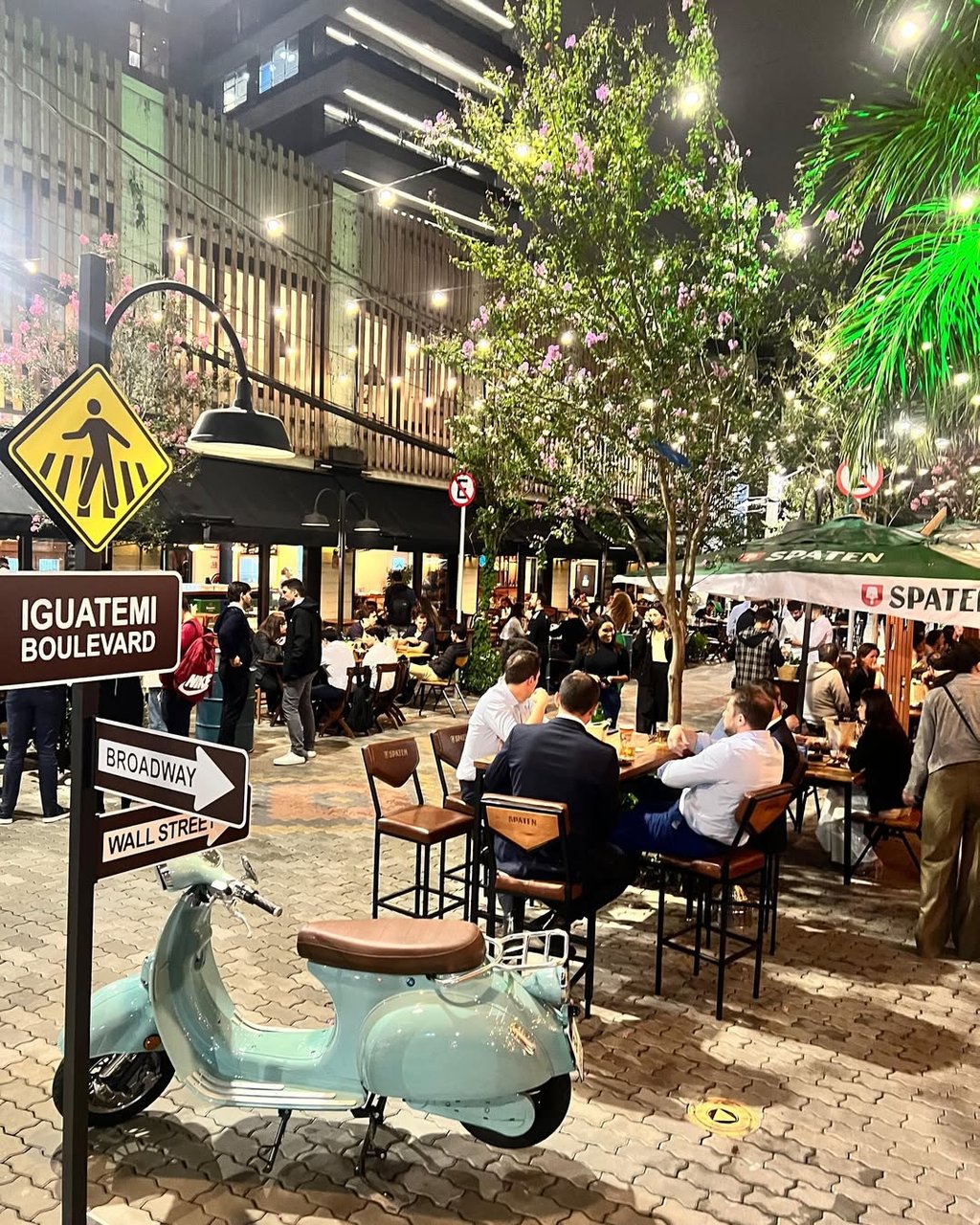 Broadway ou Wall Street? No centro financeiro do hemisfério sul, a Faria Lima, luzes de vila, paralelepípedo e lambreta vintage formam o Boulevard Iguatemi com estética europeia ideal para Instagram.