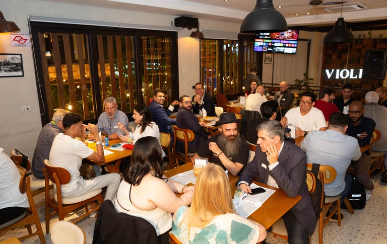 Amostra da Dinâmica V.I.P.. Sem análise prévia, foca em giros de mesa ágeis sem repetições. Ambiente desenhado para gerar negócios, insights e parcerias de alto valor de maneira instantânea.